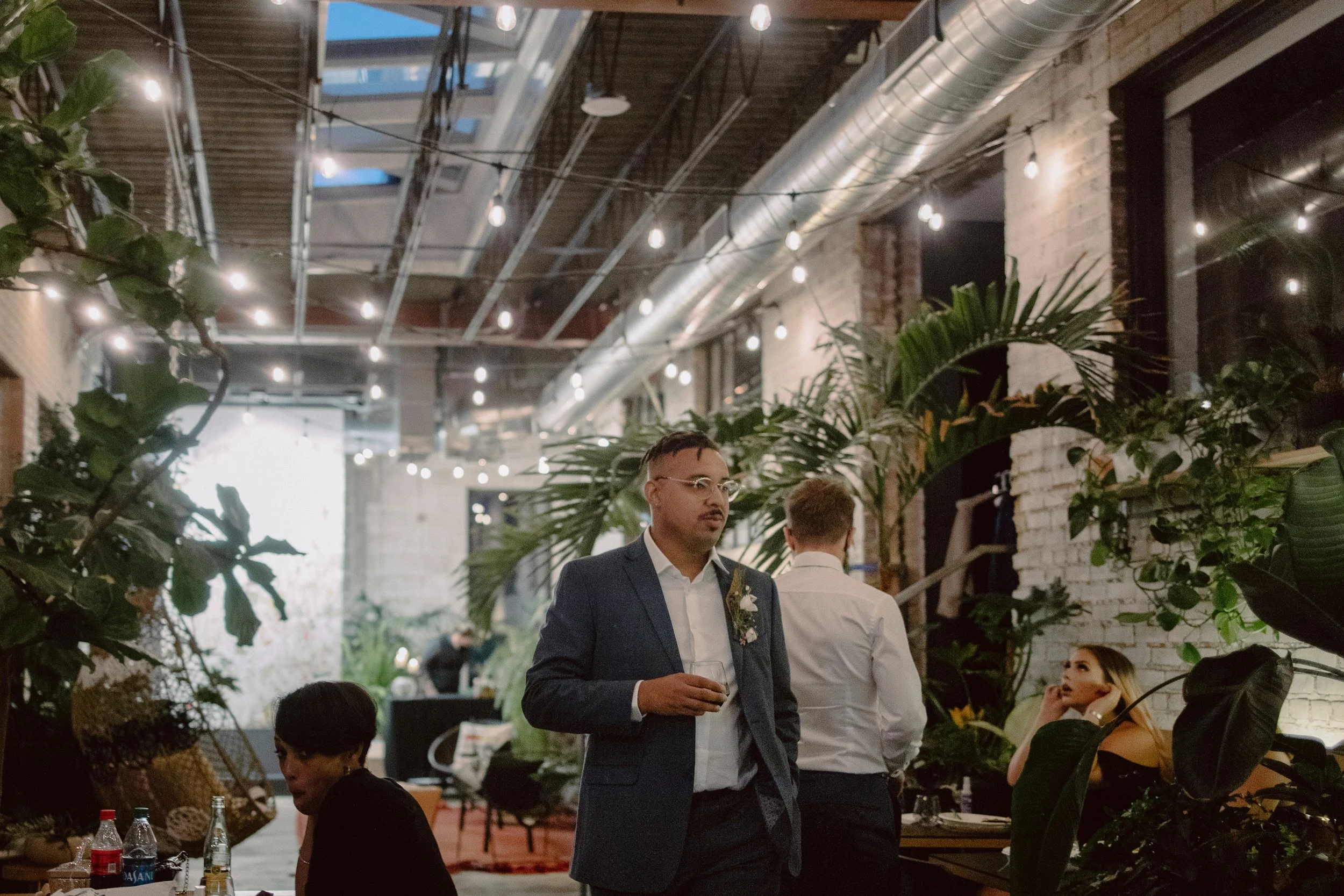 Inside you’ll find two connected spaces: one modern and sleek industrial, the other a more boho, plant-filled green space. Seriously a plant lovers delight - there is no venue like this in the Twin Cities! Even though the space is intimate, there’s still that feeling of breathing room, likely because of the potted trees and brick wall cut outs. The outdoors inside means you won’t have to stress about inclement weather, which in Minnesota happens every. single. damn. month.
